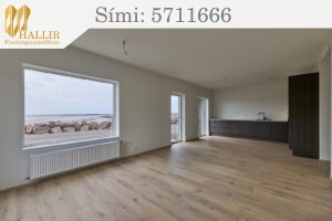 Hallir Fasteignamiðlun ehf. kynnir nýjar íbúðir í einkasölu að Brákasundi 5, Borgarnesi: Um er að ræða þriggja herb. íbúðir, 91,9 fm, en til viðbótar er sameiginlegt inntaksrými á jarðhæð sem er 2,7 fm. Hver íbúð skiptist í anddyri, baðherbergi, þvottahús, tvö svefnherbergi ásamt alrýmis stofu og eldhúss með útgengi út á svalir á efri hæð eða hellulagðan sér afnotarétt á neðri hæð. Íbúðirnar á efri hæð hafa aukna lofthæð í alrými. Húsið er fjórbýlishús og er það á tveimur hæðum. Íbúðirnar fjórar skilast fullfrágengnar með gólfefnum. Baðherbergi, þvottahús og anddyri eru með flísalögð gólf og veggir baðherbergis flísalagðir að hluta. Önnur gólf eru parketlögð. Innréttingar, þ.e. eldhús, bað og skápar í herbergi og við inngang eru frá HTH og keypt í Ormsson. Eldhústæki eru af gerðinni AEG frá Ormsson. Þvottahús eru óinnréttuð með tengingu fyrir þvottavél og þurrkara.