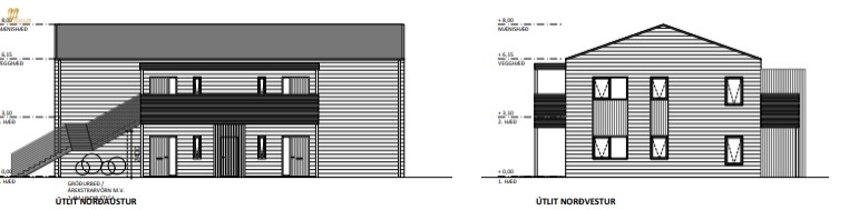 Húsið er byggt úr timbureiningum með steyptum undirstöðum og er reist á staðsteypta plötu. Timburklæðningar utanhúss eru kjarnafura með innþrýsta brunavörn, viðhaldslítið efni og má grána með tímanum. Húsið er með 6 bílastæðum hinumegin við götuna móts við húsið, en 2 bílastæði eru við hlið húss, alls 8 bílastæði. Bílastæði við hlið húss eru ekki séreign neinnar íbúðir. Íbúðirnar eru tilbúnar til afhendingar við kaupsamning.